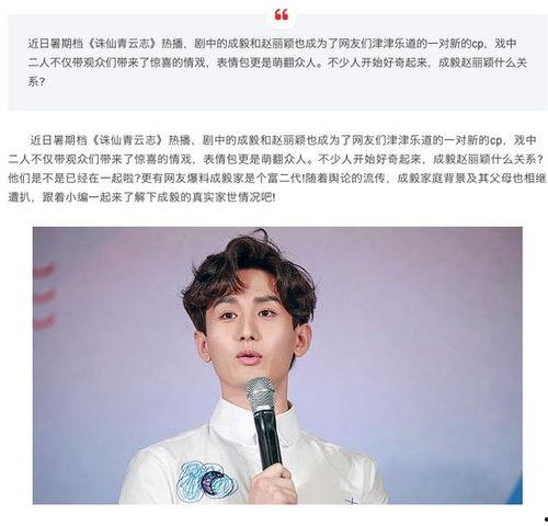 咱们不得不提一下成毅的感情生活。虽然他一直保持着低调的态度,但关于他的感情传闻却从未间断。最近,有网友爆料称,成毅与某位女明星关系亲密,疑似已经陷入爱河。不过,这些传闻都只是猜测,真相如何,我们还需等待官方的回应。